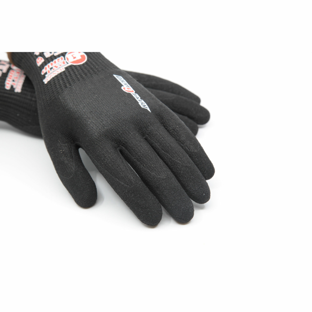 Smidig skärskyddshandske (Nivå F) med högsta nivå skydd mot skärskador. Foamad nitrilbeläggning på innerhanden och över fingertopparna vilket ger hög slitstyrka och hög oljeresistens. Sandy grip teknologi ger den ruggade ytan som gör greppet extra bra. Den ergonomiska utformningen på handsken gör handsken bekväm och minskar trötthet i händerna.
