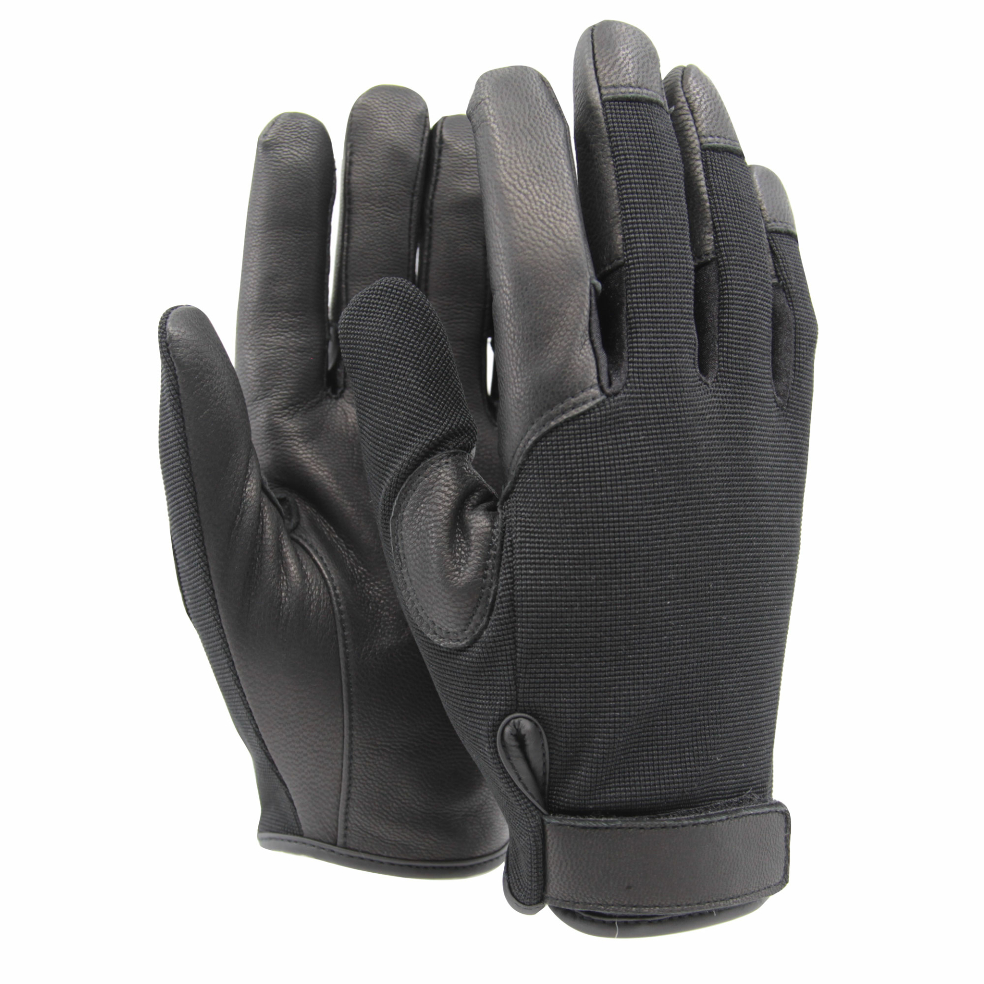 Lätt och smidig taktisk handske avsedd för kroppsvisitering och liknande situationer där det är viktigt med fingertoppskänsla samtidigt som risken för skärskador är stor. Sydd i smidigt getskinn av högsta kvalitet i innerhanden. Spectra® foder i hela handsken, som ger goda skärskyddsegenskaper. Läderförstärkningar för fingertoppar, hela pekfingret samt i greppet för extra slitstyrka. Ovanhand i elastisk spandex med hög andningsförmåga. Justerbar i handleden med kardborreband för bättre passform. Isydd förvaringögla i kragen på varje handske, för förvaring i t ex bälte med kabinkrok.