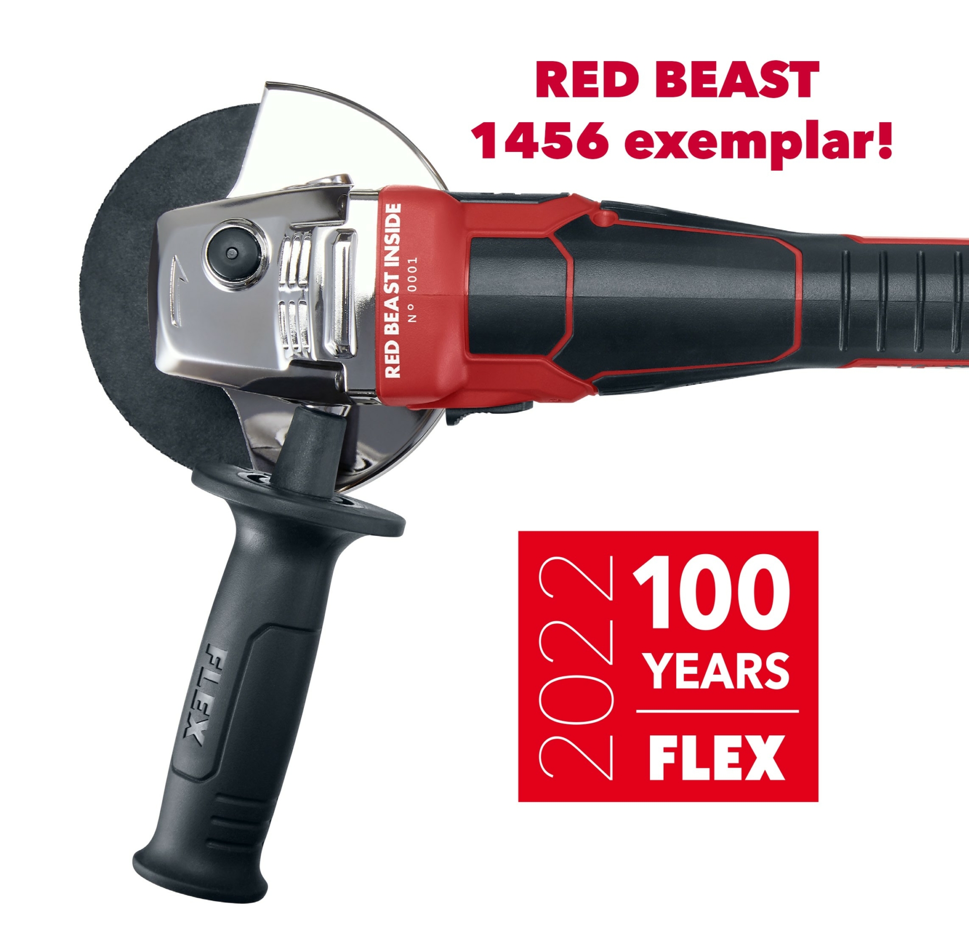 83kg höghållfast aluminium från en 4000hk dragstermotor – av denna har FLEX byggt ett strikt begränsat antal vinkelslipar som specialutgåva för 100-årsjubileet.
