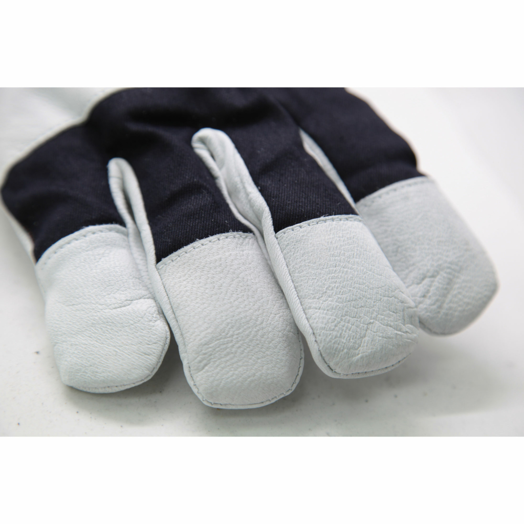 Traditionell arbetshandske som är sydd i getskinn. Handsken är fingertoppsförstärkt med ovanhand i vävt bomullstyg. I handsken finns ett tjockt teddyfoder. Krage i kraftig bomull och pulsåderskydd i getskinn. Knogförstärkt. Handsken är en typisk allroundhandske.