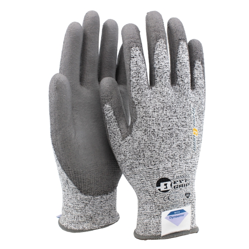 Stickad skärskyddshandske (Nivå C) i Dyneema® vilket gör handsken smidig med mycket bra fingertoppskänsla. Extremt tunn men ändå slitstark PU-beläggning som ger bra grepp. Butadienfri. Den ergonomiska utformningen på handsken gör handsken bekväm och minskar trötthet i händerna.