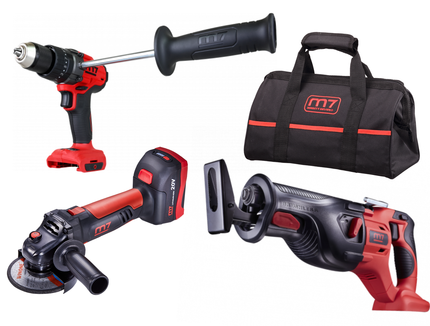 Storslagen verktygskampanj med proffsverktyg från M7. Totalt 3 maskiner inklusive dubbla batterier samt laddare ingår.