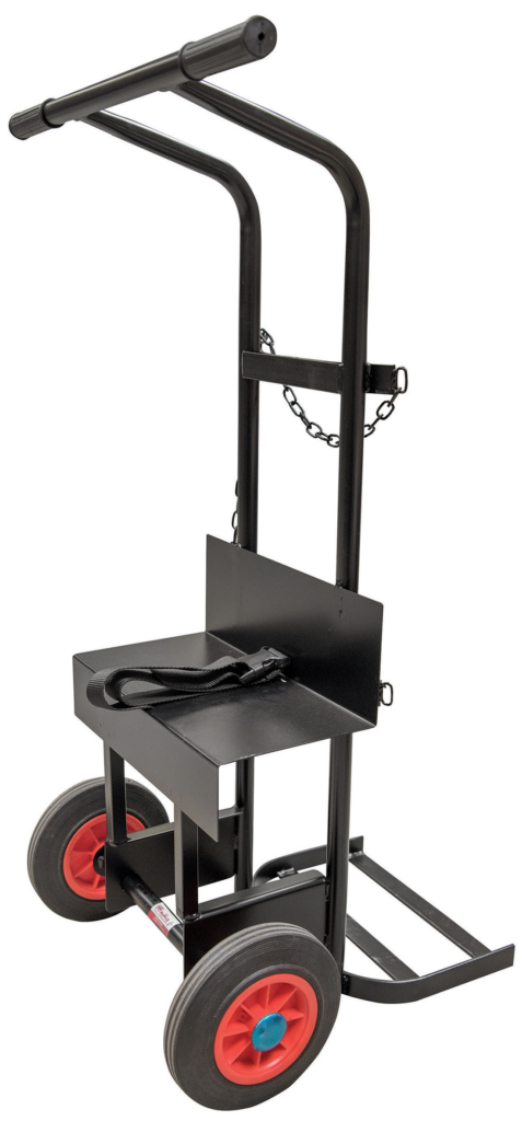 Universell kärra för svetsmaskin och gasflaska. Smidig och kompakt, lätt att hantera båda i verkstaden som ute på jobb.