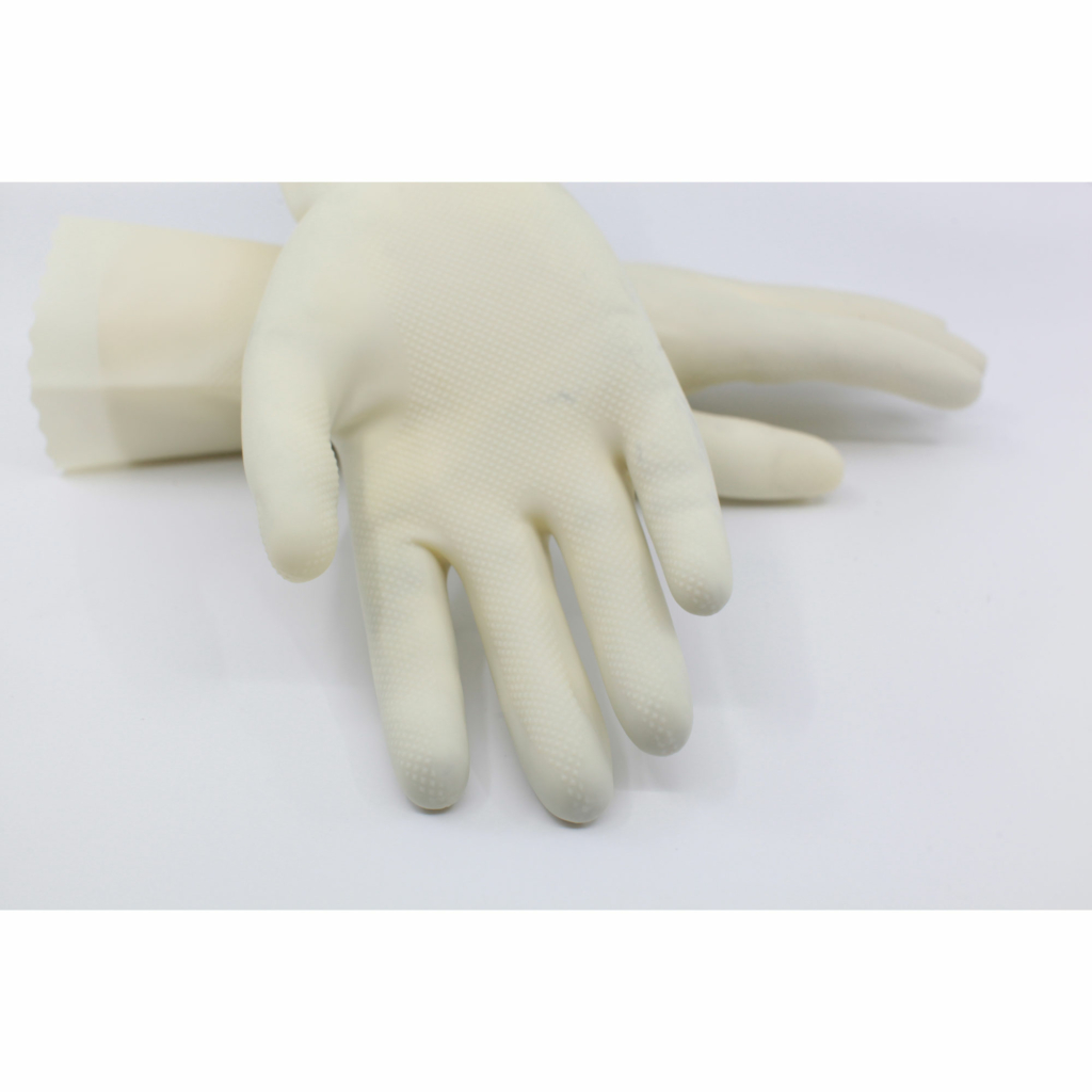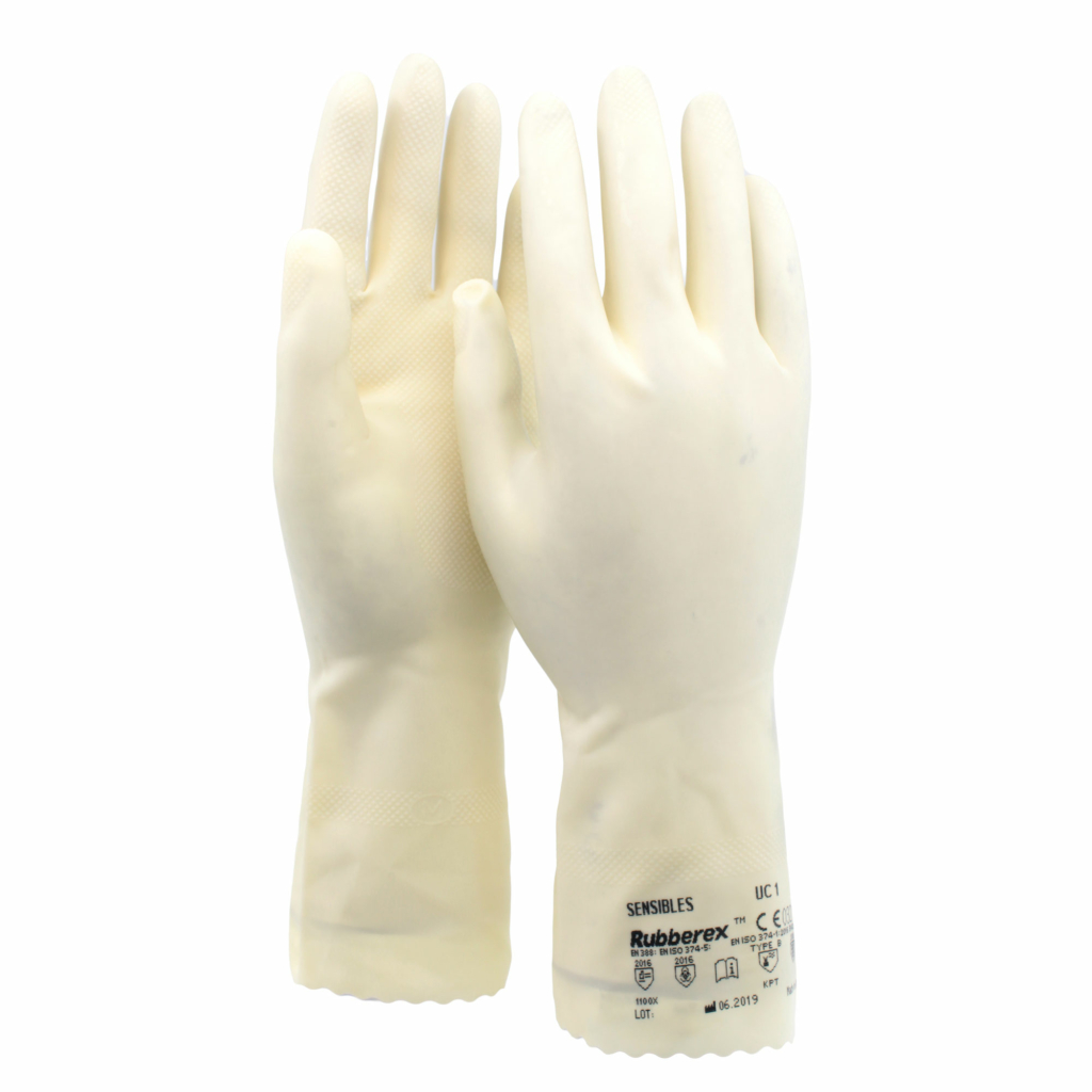 Kemskyddshandske i specialformulerad latex. Dammfri, både på insida och utsida. Ytbehandlad. Ofodrad. Godkänd för livsmedelshantering. Handsken är fri från silikon.Längd (mm): 295 +/- 10, Tjocklek (mm): 0.39 +/- 0.05