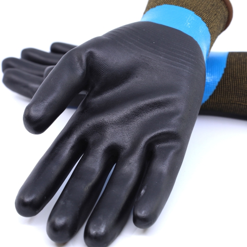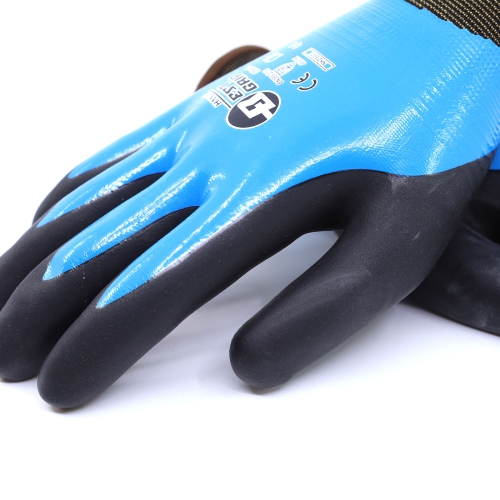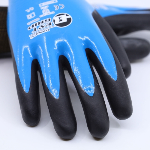 Stickad vattentät handske i nylon med överlägsen passform och extremt hög komfort. Dubbla lager nitrilbeläggning gör handsken vattentät med mycket god oljeresistens. Butadienfri. Yttersta lagret i slät nitril som ger ett bra grepp i såväl torra som våta och oljiga förhållande. Ergonomisk design som minskar handtrötthet och ger en bekvämare handske.