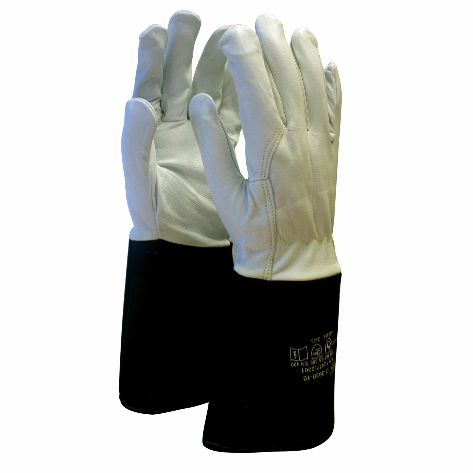 Svetshandske tillverkad helt i getskinn av högsta kvalitet med krage i nötspalt. Handsken är sydd med stark och värmetålig kevlar® tråd med dubbla sömmar på utsatta ställen.